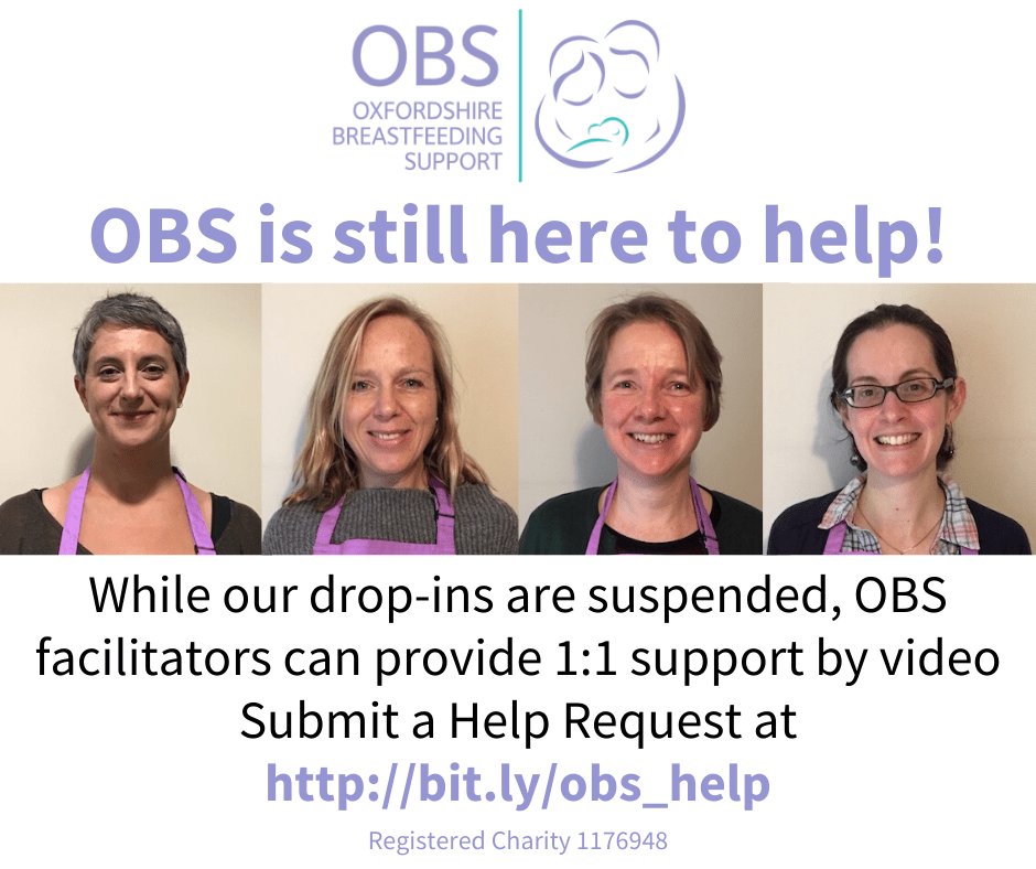 Although the infant feeding team at John Radcliffe are understandably closed, Oxford Breastfeeding Support are still here and will be providing one-to-one support via video.