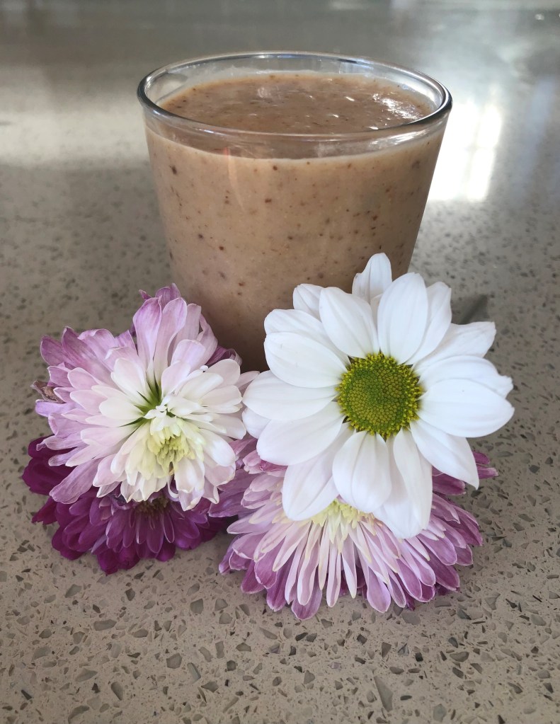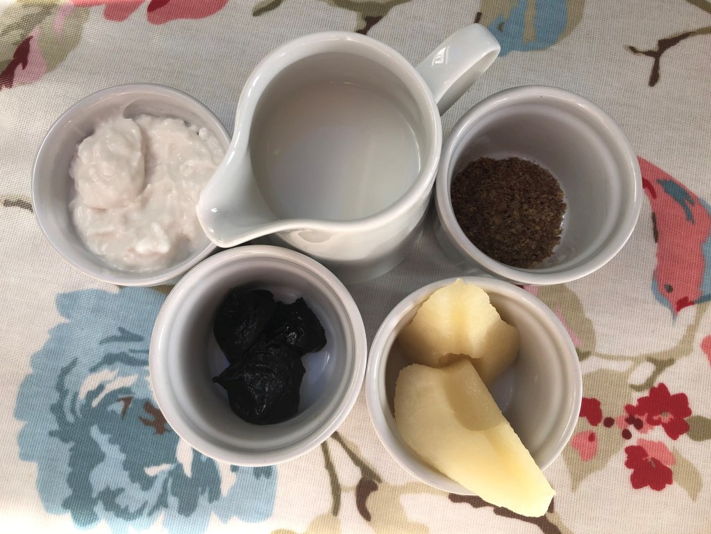 In this picture, I used live coconut yoghurt, rice milk, 1 tsp of flax and 3 prunes.