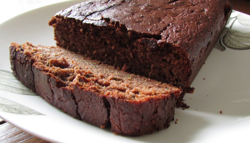 Mix the dry ingredients into the wet, then stir through 180g grated courgette (about 1 medium courgette). Pour into a lined loaf tin and bake for about 45 mins on Gas mark 4, 180C, 350F until a toothpick inserted comes out clean. You could make these into muffins too. Just bake for less time.