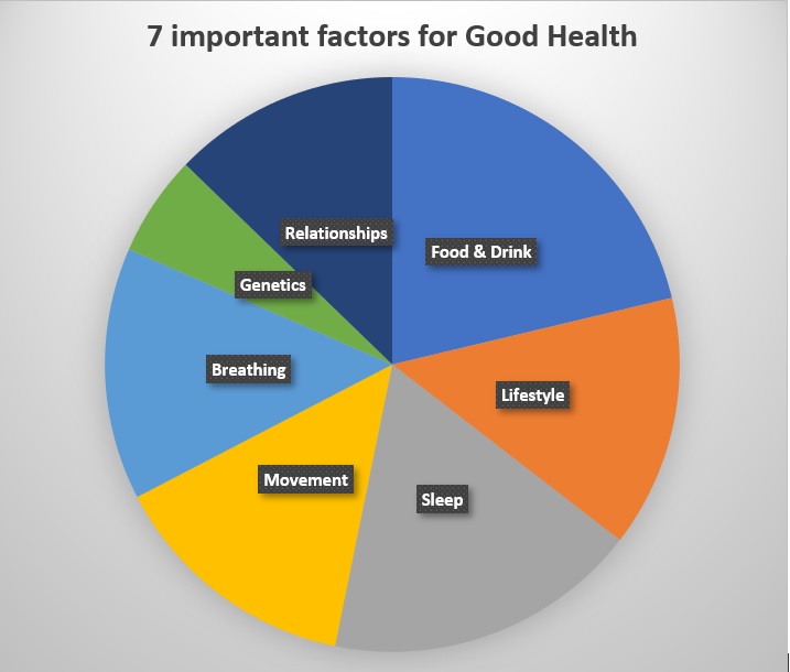 The main factors that contribute to optimal health are shown in the pie chart below. Each slice of the pie may vary in size depending on the individual.